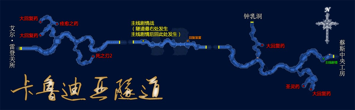经过艾尔雷登关所至卡鲁迪亚隧道继续前进了。走到卡鲁迪亚隧道接近尽头的地方发生剧情。之后2人沿着之前走过的路回去,在过一座旁边有回复装置的桥的地方找到提妲并发生剧情战,之后提妲入队,众人经隧道前往蔡斯中央工房。