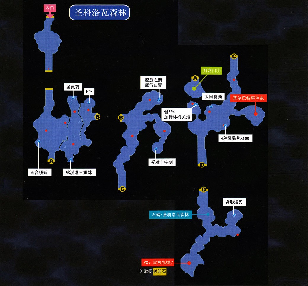 森林内不要忘了收集宝箱、调查月之门④,在图中C-D路上还会再次营救基尔巴特。继续前进就是BOSS战——?雪拉扎德?。敌人会用附带混乱和黑暗攻击。开场后建议用连锁或是S技迅速消灭两边的小BOSS,他们会用吸取CP的战技,与其被吸走不如尽快用掉以便消灭敌人。雪拉本身战斗力不算强。战斗后获得封印石,出来的当然是雪拉扎德了。雪拉扎德拥有强制AT归零的战技天堂之吻,该战技用好了能极大地加快战斗进程,大幅提升我方作战效率。雪拉在队就能进入【月之门②】了,这里的战斗比较多。
