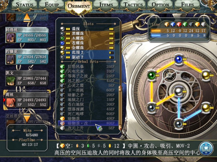 1.暗物质改:高附加伤害(500),地点指定,加上范围2后范围为大圆,附带中心吸引,并且减敌方MOV,用了这个魔法,即使是菜刀的小圆技也有了用武之地,另外暗物质改配合连锁、范围魔法、卡位、拖走自爆怪等等都是相当不错,唯一的缺憾是硬直时间略长,不过基本无碍