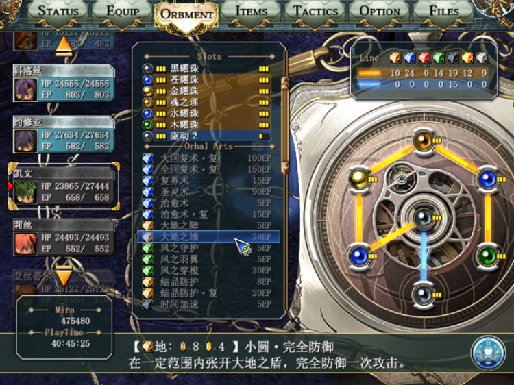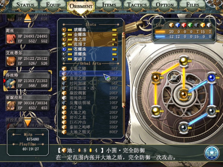2.大地之墙、盖亚之盾:墙流必备之神技,由于太无耻了所以......不用...对于墙流实际上盖亚不实用,耗EP太多而且驱动和硬直时间太长,惟一的优势是胜在全屏